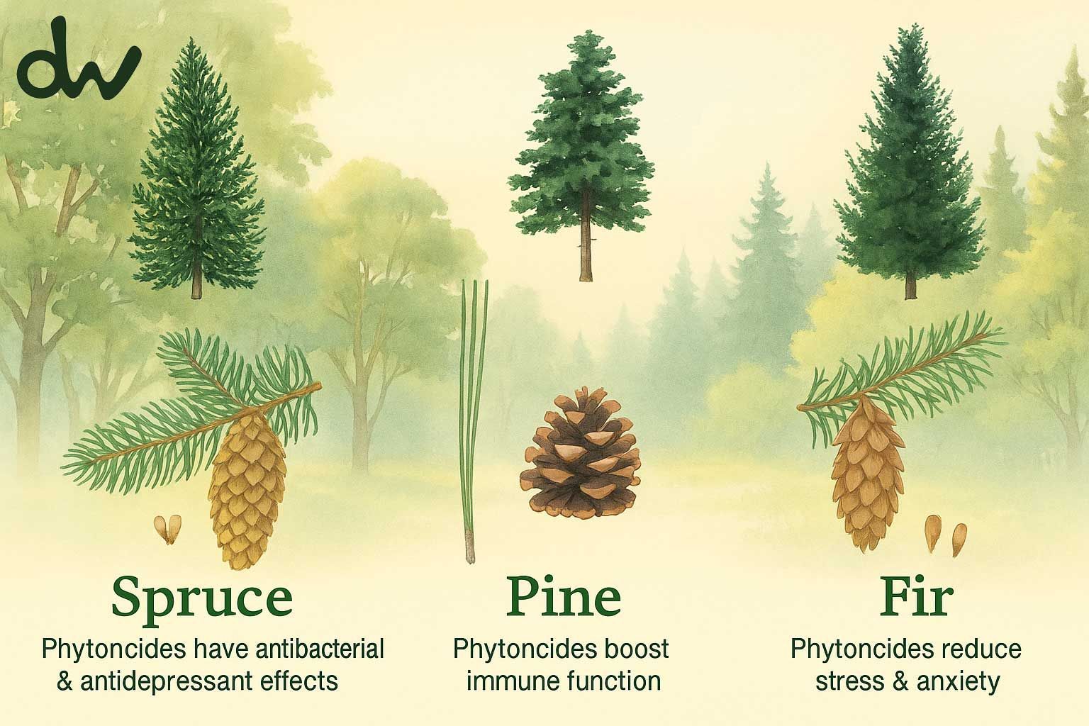 - Spruce (Picea spp.) – another conifer high in phytoncides.